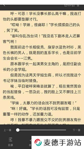 3、打开你喜欢看的书籍,app支持章节目录选择、夜间模式、自定义调整亮度等功能。