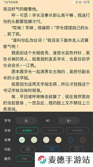 4、同时为便于用户阅读,你还可以自己搭配调整选择字体、背景、间距和翻页模式。