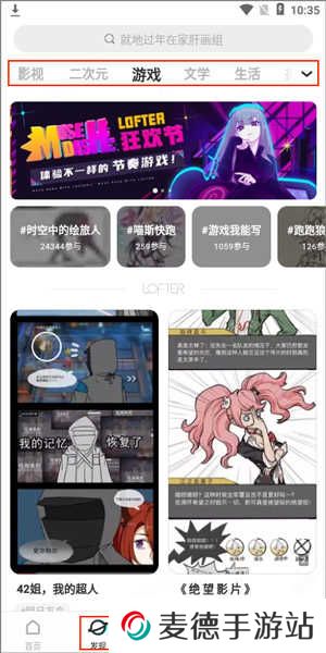2、发现功能中玩家能够与其他的用户一同参与有关影视、生活、游戏、二次元、文学等用户感兴趣的话题;