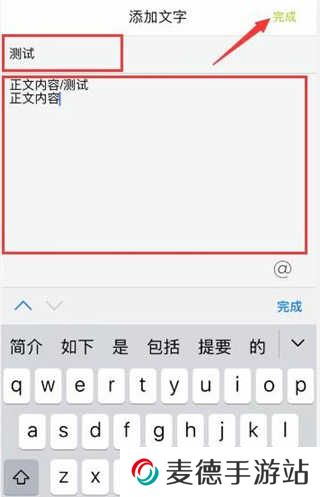 在打开的编辑页面中,输入文章标题和文章正文内容,输入完成后,点击右上角“完成”