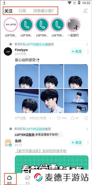 LOFTER界面介绍1、在软件首页当中,用户能够在其中查看你所关注人的动态信息,还能参与热门话题问答;