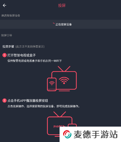 5、第五步:需要注意的是想要投屏电视的话,需要电话和手机在同一WIFI下。