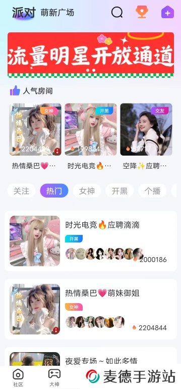 3、点击派对还可以快速加入到各种热门的房间中