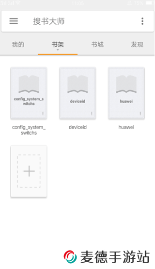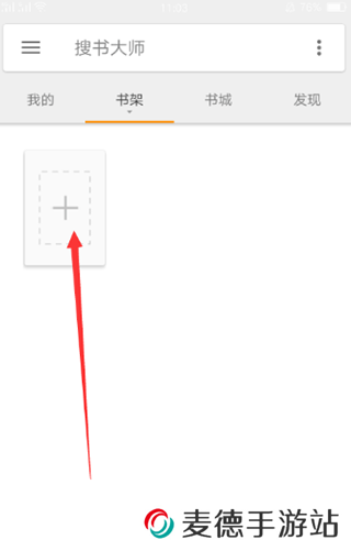 搜书大师App如何导入书源?1、首先在手机上打开搜书大师,在书架界面点击“+”号图标;