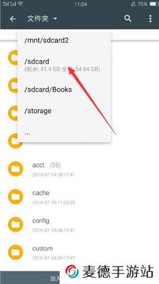 2、点击加号图标后进入文件选择界面,在文件界面点击左上角“文件夹”,选择存储路径;