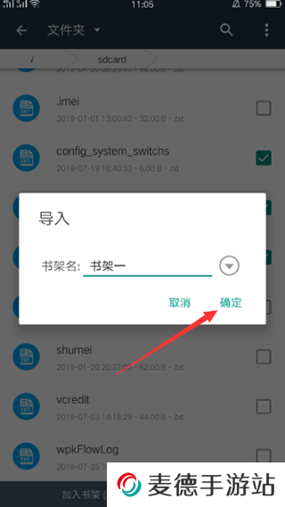 3、找到并勾选需要导入的文件,然后点击下方的加入书架按钮,在该界面设置好书架名称后点击确定;